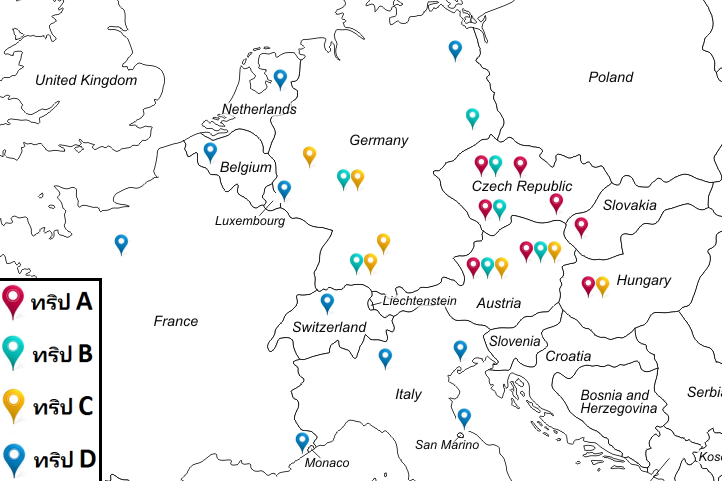 โดยเราขอนำเสนอแพ็คเกตทัวร์ 8 วัน 7 คืน โดยแบ่งออกเป็น 3 แบบ ได้แก่ ทัวร์ A สาธารณรัฐเช็ค – ออสเตรีย – ฮังการี – สโลวาเกีย , ทัวร์ B ออสเตรีย – สาธารณรัฐเช็ค – เยอรมัน , ทัวร์ C เยอรมัน – ออสเตรีย – ฮังการี หรือในกรณีที่ท่านมีแผนการท่องเที่ยวที่ต้องการอยู่แล้ว สามารถใช้บริการทริป D ตามใจฉัน เพียงแค่ระบุสถานที่ ลักษณะ การท่องเที่ยวที่ท่านต้องการส่งมาให้เราจัดทำทริปส่วนตัวให้การท่องเที่ยวครั้งนี้เป็นไปได้ดั่งใจคุณต้องการ และเราคิดว่าทุกท่านจะได้รับความประทับใจกลับไปอย่างแน่นอน